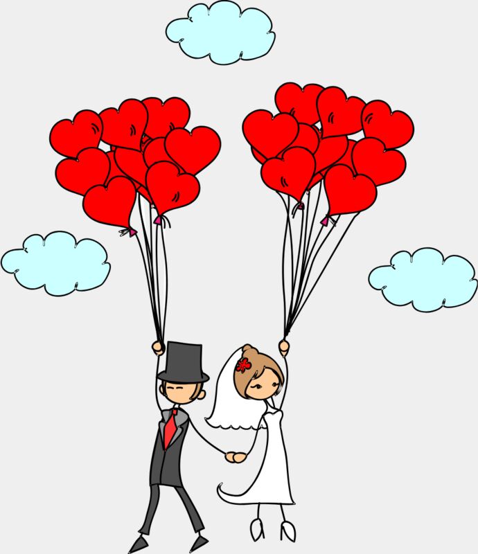 Cartoon Wedding Groom Bride Heart Balloons 3