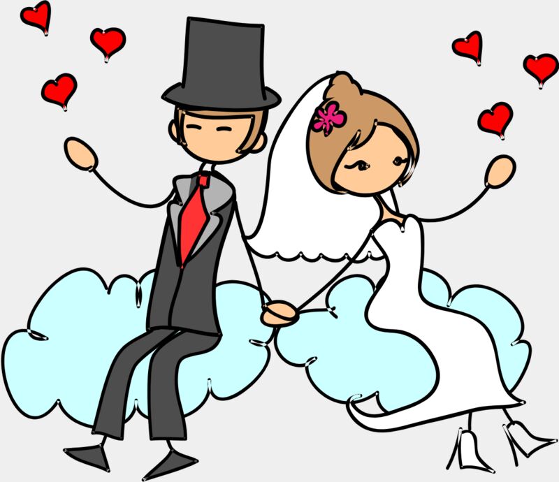 Cartoon Wedding Groom Bride Holding Hands 10