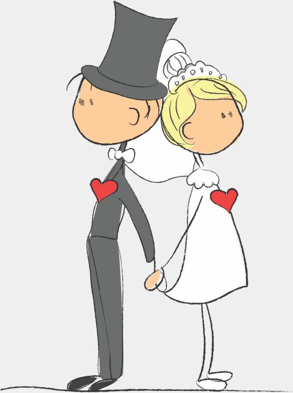 Cartoon Wedding Groom Bride Holding Hands 2